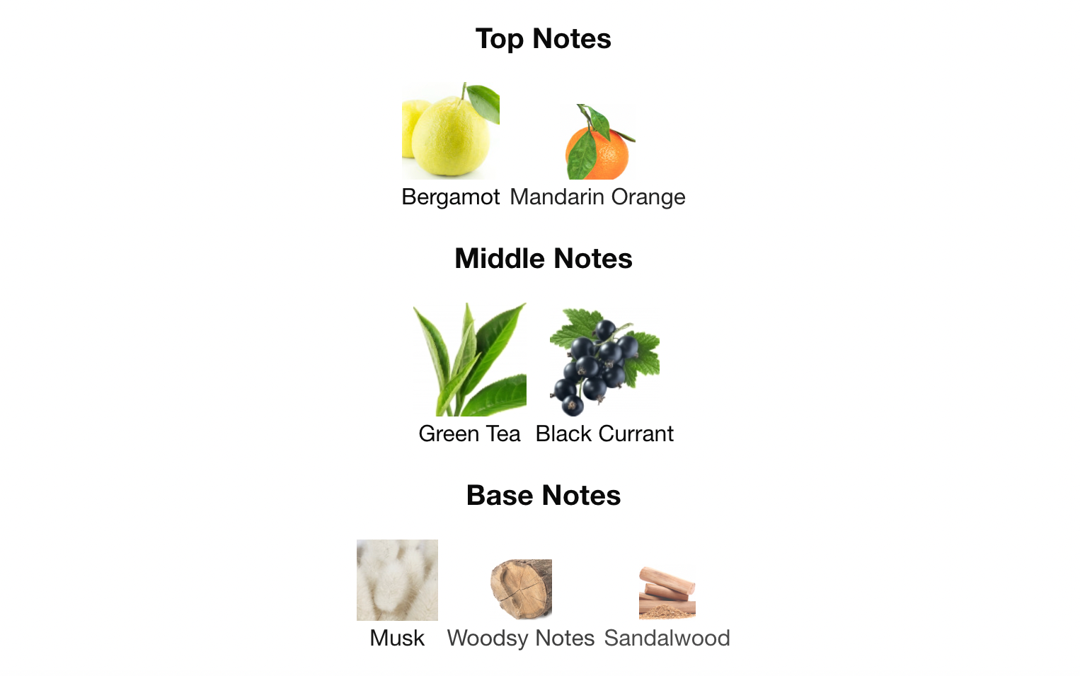 Base notes are Musk, Woodsy Notes and Sandalwood.